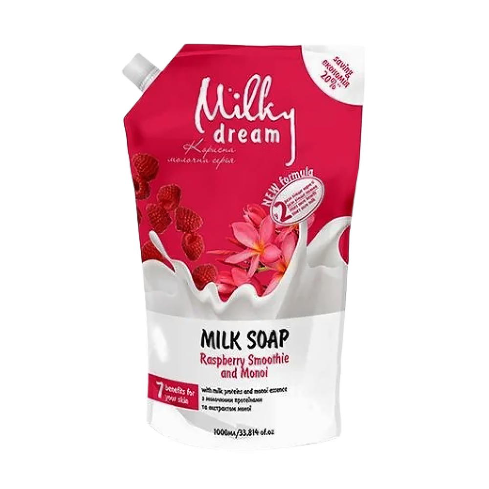 Рідке крем-мило Milky Dream Малиновий смузі та моної з молочним протеїном та екстрактом моної, 1 л (дойпак)