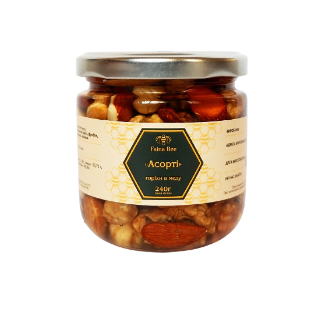 Состав: акациевый мед, фундук, кешью, грецкий орех, миндаль