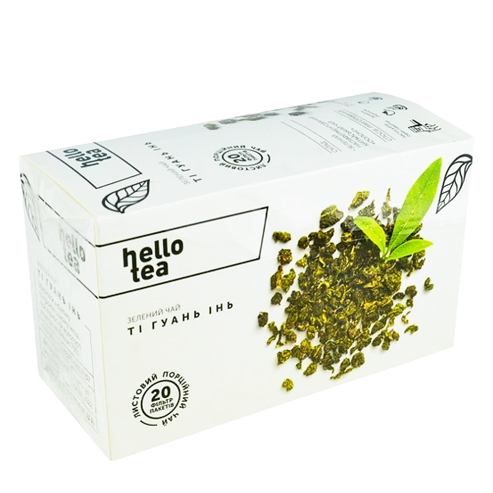 Зелений чай підходить для щоденного споживання. Ви можете купити зелений чай Hello Tea Ті Гуань Інь, фільтр-пак 20 шт або вибрати інші смаки пакетованого чаю.