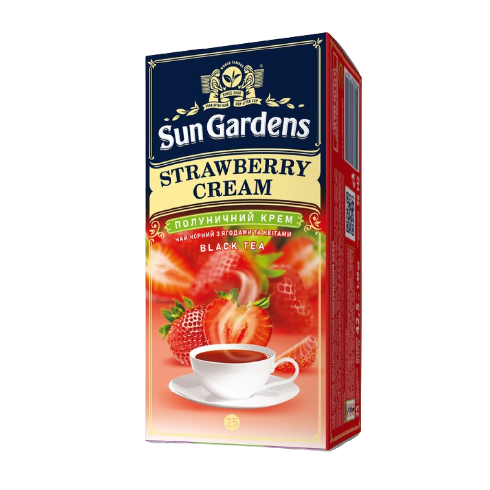 Черный чай Sun Gardens "Клубничный крем" – это ароматный и утонченный чай с нотками клубники и крема. В каждом пакетике саше содержится тщательно подобранный микс ингредиентов, создающих насыщенный вкус и приятный аромат. Натуральный вкус спелой клубники создает яркое и освежающее восприятие чая. Аромат свежих ягод добавляет легкости и игривости в чашку чая. Дополнительная нотка крема придает этому чаю нежность и мягкость это создает более глубокий и насыщенный профиль вкуса, делая чашку чая более обильной и уютной. Изготавливается из высококачественных ингредиентов с использованием современных технологий, что гарантирует сохранение свежести и вкуса. Каждый пакетик саше предварительно дозирован, что облегчает приготовление чая. Просто поместите пакетик в чашку, добавьте кипяток и дайте завариться, чтобы насладиться великолепным вкусом. Этот чай идеально подходит для тех, кто любит наслаждаться утренним чаем или расслабиться вечером после долгого дня. Сочетание клубники и крема создает уникальный и неповторимый вкус, который обязательно понравится ценителям чая и любителям необычных вкусовых сочетаний.